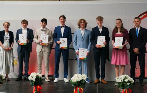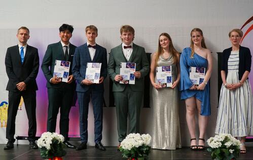 Im feierlichen Rahmen der diesjährigen Abiturverleihung am 29.06.2024 wurden auch die MINT-EC-Zertifikate an sechs Abiturientinnen und Abiturienten verliehen.