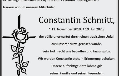 Als Schulgemeinschaft des Gymnasium Petrinum Recklinghausen trauern wir um unseren Mitschüler