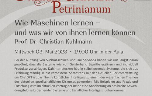 Im Rahmen des Studium Generale Petrinianum Jahrgang III (2023) werden am