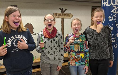 Viel Spaß hatten die Schülerinnen und Schüler der Stufe 5 bei der Zahnpflegeschulung, durchgeführt durch das Zentrum für Zahnmedizin Fleuter &Fleuter.