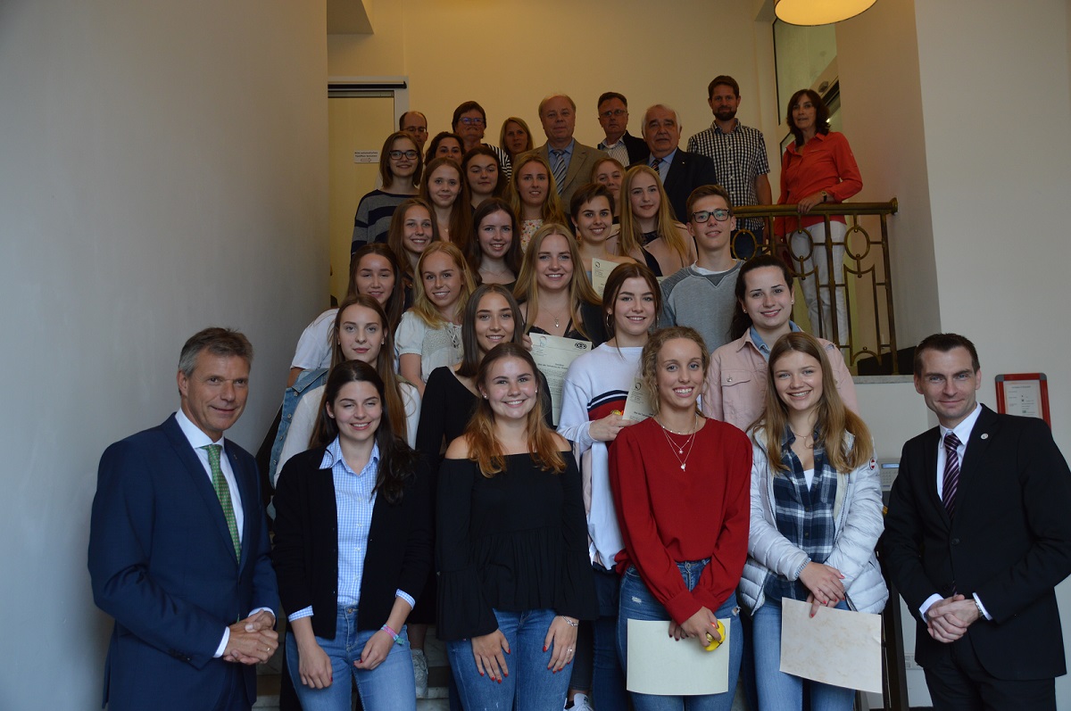 Eindrucksvoll schilderten einzelne Schülerinnen im Rahmen der Feierstunde im Stadthaus E kurz ihre Eindrücke und Erfahrungen während des Praktikums. Alle anwesenden Gäste waren beeindruckt von den Erlebnissen voller Empathie, Menschlichkeit und gelebter Nächstenliebe, welche die Jugendlichen sichtlich berührt schilderten. Umso größer war der Dank, den Bürgermeister Christoph Tesche und Schulleiter Michael Rembiak mit der Übergabe der Praktikumszertifikate verbanden. Dieser galt nicht nur den Praktikantinnen und Praktikanten, sondern ebenso den schulischen Organisatoren des Praktikums, Herrn Weißweiler und Frau Sehrbrock, den betreuenden Lehrkräften sowie den Institutionen, die seit vielen Jahren als Partner des Sozialpraktikums mit dem Petrinum zusammenarbeiten und auch Vertreterinnen und Vertreter zur Feierstunde entsandt hatten. Alle Anwesenden waren sich einig: Diese Erfahrungen des Sozialpraktikums müssen auch zukünftig möglich sein und es gilt, mit allen Kräften weiter für neue Praktikantinnen und Praktikanten zu werben, die durch gemeinschaftliches Handeln in sozialer Verantwortung ihre Stadt Recklinghausen tragen.