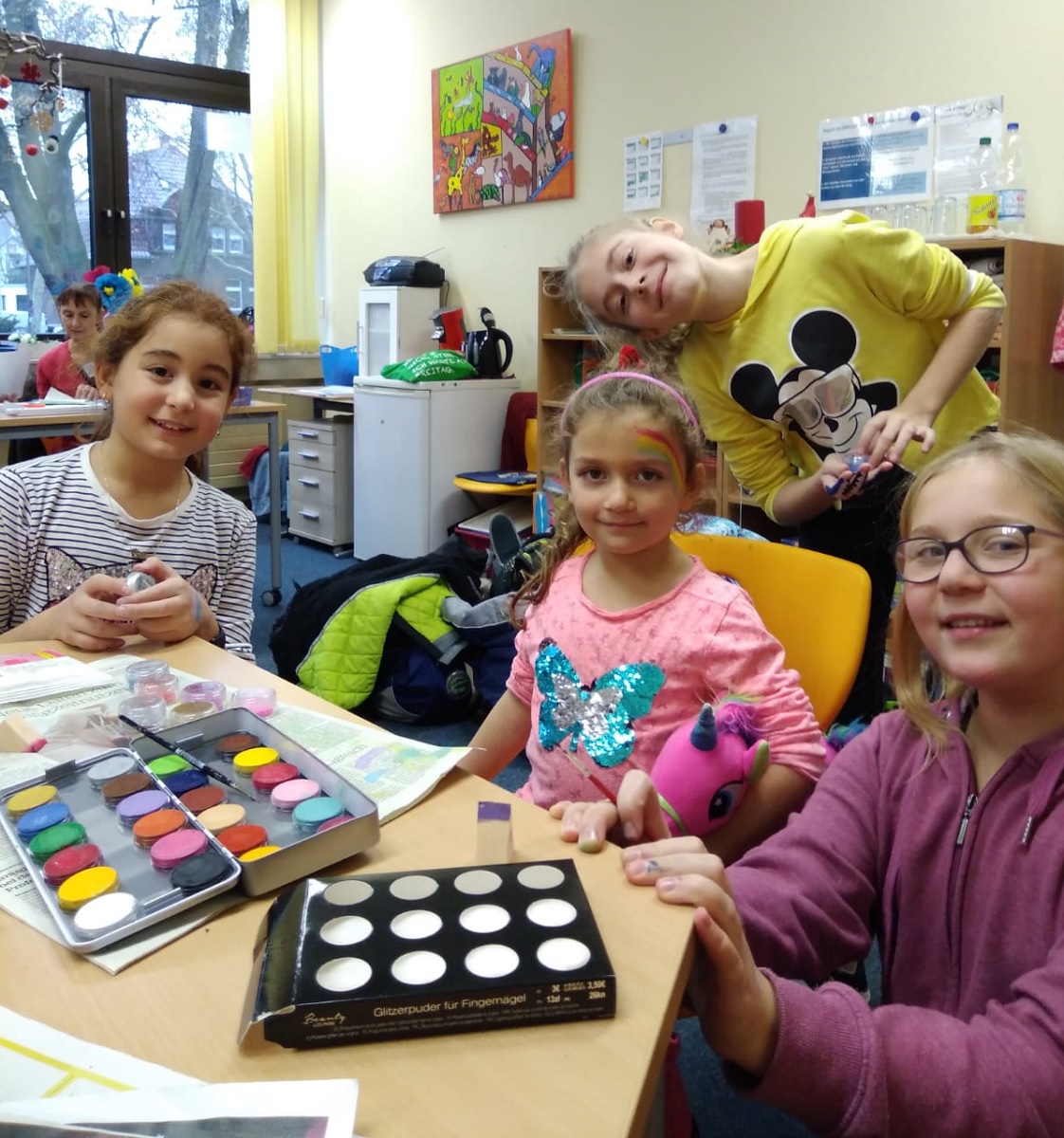 Das Betreuungsteam des Offenen Ganztags am Gymnasium Petrinum resümiert: das Angebot, die Geschwisterkinder am gesamten Elternsprechtag zu betreuen, war ein großer Erfolg. Eltern waren voll des Lobes, da ihre jüngeren Kinder mit sehr viel Spaß und Spiel beschäftigt wurden; es gab ein kunterbuntes Programm. Besonders das Kinder-Schminken erfreute sich großer Beliebtheit. Da es bei diesem ersten Mal ein so gute Resonanz und viel positives Feedback gab, werden wir dieses Angebot im nächsten Schulhalbjahr gerne wieder einrichten.