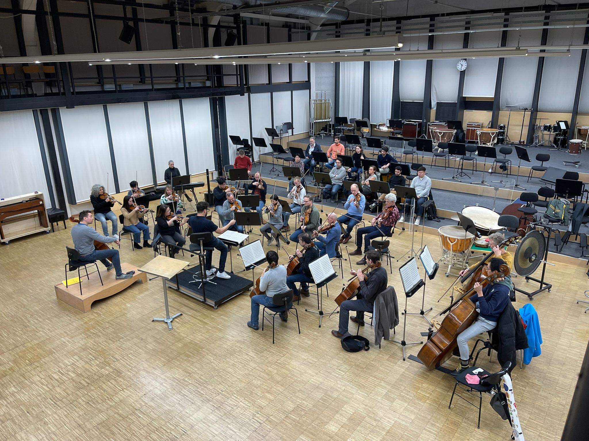 Im Rahmen des MusikLabs, einer Veranstaltung, die interessante Einblicke in musikspezifische Einrichtungen bietet, haben wir dieses Mal der Neuen Philharmonie Westphalen einen Besuch im Depot in Recklinghausen abgestattet. Dort angekommen hat uns der Konzertpädagoge und Orchestermusiker Roland Vesper in Empfang genommen und uns ein wenig Hintergrundwissen zu diesem Orchester gegeben. Ich fand es besonders beeindruckend, wie viele Konzerte die Neue Philharmonie in kürzester Zeit hintereinander gibt. Es sind aber natürlich alles auch Profimusiker. Und genau denen konnten wir anschließend bei einer Probe unter Leitung von Markus Huber, Chefdirigent der Thüringen-Philharmonie Gotha-Eisenach, lauschen. Danach hatten wir das Glück, dass er seine Pause aufopferte, um uns ein paar Fragen zu beantworten und uns etwas über sein Schaffen zu berichten. Er erzählte, wie er zu seinem Beruf kam und darüber, wie er sich auf solche Proben vorbereitet.