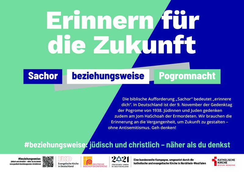 Von den vielen Jahrestagen, derer die Deutschen am 9. November gedenken, betrifft einer den jüdisch-christlichen Dialog besonders: In der Reichspogromnacht auf den 9. November 1938 wurden jüdische Einrichtungen von Nationalsozialisten und ihren Anhängern systematisch zerstört, bezahlten Jüdinnen und Juden den Rassenwahn mit ihrem Leben. Und heute? Gilt Brechts „Der Schoß ist fruchtbar noch / aus dem das kroch“ kaum verändert. Von den 1909 dokumentierten antisemitischen Gewalttaten 2020 in Deutschland bilden Stichworte wie „Halle 2019“ nur die Spitze eines Eisbergs Während Jüdinnen und Juden am Yom ha’Scho’a, dem „Tag der Shoah“, der nationalsozialistischen Barbarei gedenken, ist damit für uns umso mehr ein Auftrag verbunden: Die Erinnerung und das Gedenken wach zu halten, damit das „Nie wieder!“ nur ein Lippenbekenntnis bleibt. Noch eine – sehr besondere – #Beziehungsweise!