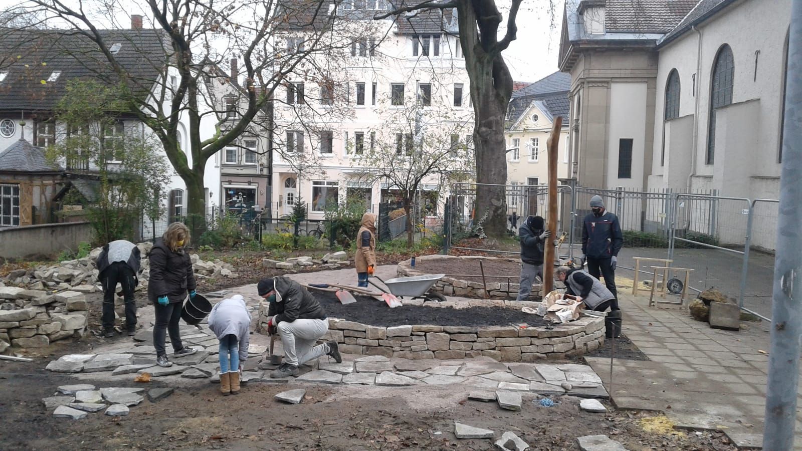 Eltern, Schülerinnen und Schüler sowie Lehrerinnen und Lehrer werkeln auch dann wieder gemeinsam mit der Schulleitung unter Anleitung des planenden und ausführenden Landschaftsarchitekturbüros Garten Design Noga an der Reaktivierung und Neugestaltung des historischen Schulgartens der Schule. Das Projekt mit einer Gesamtinvestitionssumme von über 80.000€ wird unter anderem mit Mitteln des Projekts Schulhofträume, bei dem wir im vergangen Jahr bundesweit den 2. Platz belegten, und des Heimat-Fonds NRW unterstützt. Trotzdem sind wir auf die Eigenleistung der Schulgemeinschaft angewiesen, um das gesamte Projekt realisieren bis zur avisierten Vollendung des Schulgartens im Juni 2021 realisieren zu können. Weitere Bilder unseres zweiten Aktionswochenende sind hier abrufbar.