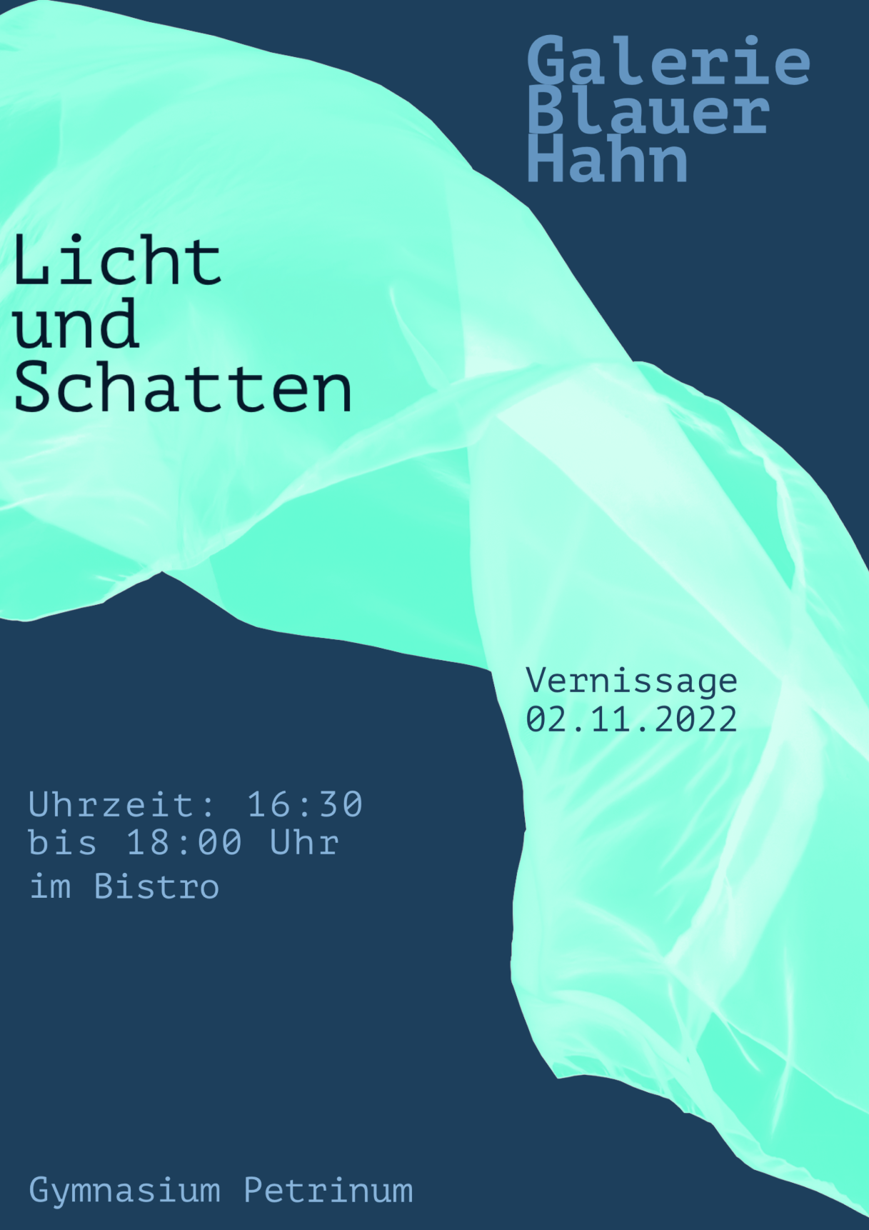 Die Galerie „Blauer Hahn“ des Gymnasiums Petrinum in Recklinghausen lädt alle Kunstbegeisterten, Schüler, Lehrer und Ehemaligen zur diesjährigen Vernissage am Mittwoch, 02.11.2022, 16:30 - 18.00 Uhr im Bistro des Gymnasium Petrinum, Herzogswall 29, 45657 Recklinghausen ein. Unter dem Titel „Licht und Schatten“ präsentieren junge Künstler und Künstlerinnen ihre fertigen Werke, an denen sie in den letzten Monaten in ihrer Freizeit intensiv gearbeitet haben.
