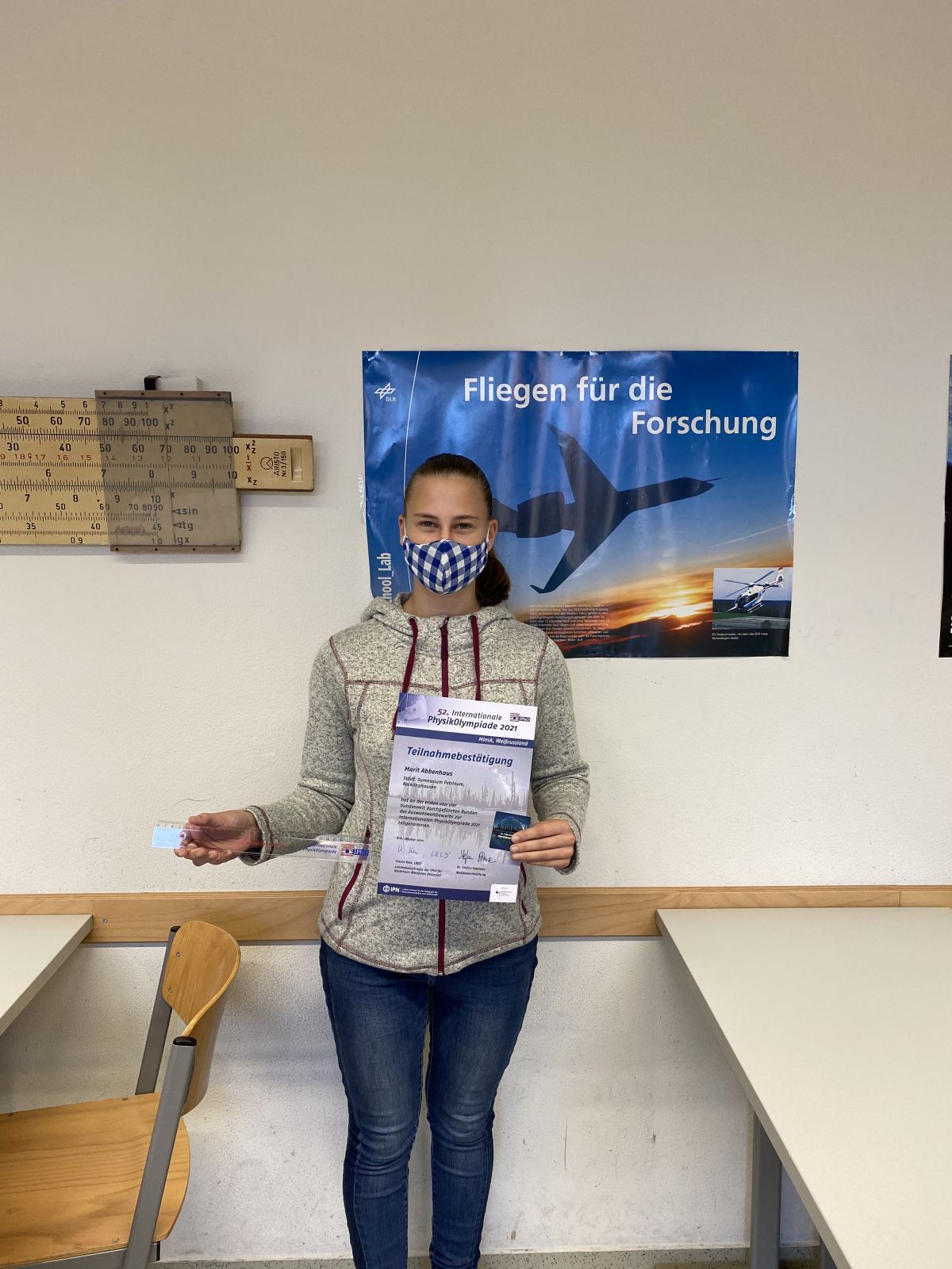 Der Wettbewerb hat zum Ziel, die Fähigkeiten besonders interessierter und begabter Schülerinnen und Schüler im Fach Physik zu fördern und ihnen schon früh internationale wissenschaftliche Kontakte zu eröffnen. Dieses Jahr nahmen insgesamt 1.200 Schülerinnen und Schüler an der ersten Runde teil, von denen mehr als 900 Bearbeitungen eingereicht haben. Unter ihnen auch Marit Abbenhaus, die zum wiederholten Male an der IPhO teilgenommen hat. Die Petriner Schulgemeinschaft gratuliert zu einer erfolgreichen Teilnahme, auch wenn es dieses Mal leider nicht für die 2. Runde gereicht hat.