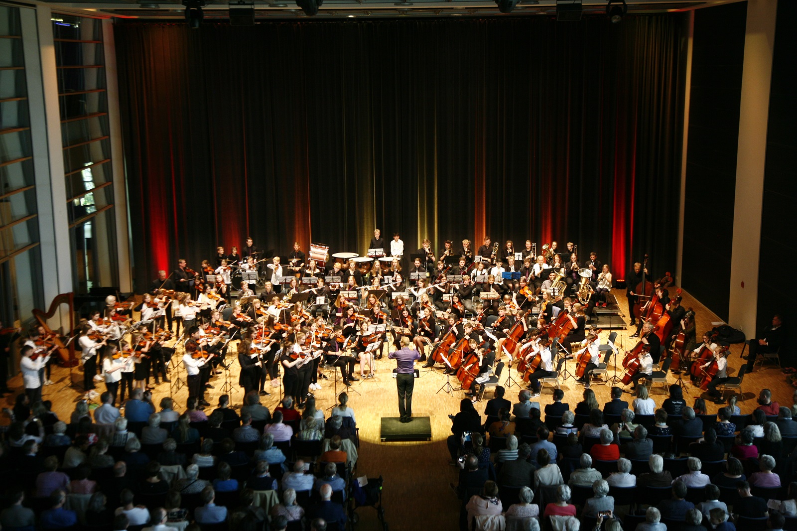 Am vergangenen Sonntag, 07. April 2019, gastierte unser Petriner Schulorchester bei einem Konzert der besonderen Art. Gemeinsam mit dem Orchester der Musikschule, den Jungen Vestsinfonikern und des JSO Recklinghausen brachte auch das Orchester des Gymnasium Petrinum den Kassiopeiasaal im Ruhrfestspielhaus zum Erklingen. Trotz des strahlenden Sonnenscheins durften sich die Organisatoren über ein zahlreiches Publikum freuen. Nachdem sich alle Orchester mit einigen eigenen Stücken vorgestellt hatten, gipfelte das Konzert in einem phänomenalen Finale, indem sie das Stück „Prince of Denmark’s March“ von Jeremiah Clarke zum Besten gaben. Die Musikerinnen und Musiker wurden mit tosendem Beifall belohnt.