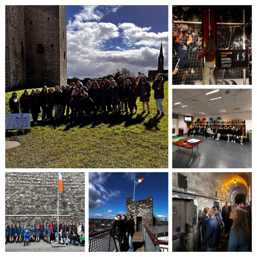 Am Dienstag begleiteten wir unsere Gastschwestern in die Schule, deren Unterricht wir gespannt und mit großen Augen verfolgten, um die ganzen Unterschiede wahrzunehmen. Eine Mädchenschule voller neuer Fächer, wie Karriere, Nähen, Coding, mentale Gesundheit oder Kochen war eine völlig neue Erfahrung für uns. Nach der Schule führte uns Mr Kajic, einer der Deutschlehrer der Irinnen, durch die Stadt Trim. Zusammen mit unseren Gastschwestern erkundeten wir das eindrucksvolle Trim Castle, dessen alte Gemäuer wir bestiegen, um eine wunderschöne Aussicht über die irische Landschaft zu haben. Aber auch bei einer Führung durch das Schloss erfuhren wir unfassbar viele Dinge über die Geschichte des Schlosses und der Stadt. Daraufhin stärkten wir uns mit Kakao und Essen in einem Restaurant und ließen den spannenden Tag mit den vielen Erlebnissen ausklingen. Von Hurling und Gaelic Football hatte vor unserer Reise fast niemand gewusst, was diese Sportarten waren.