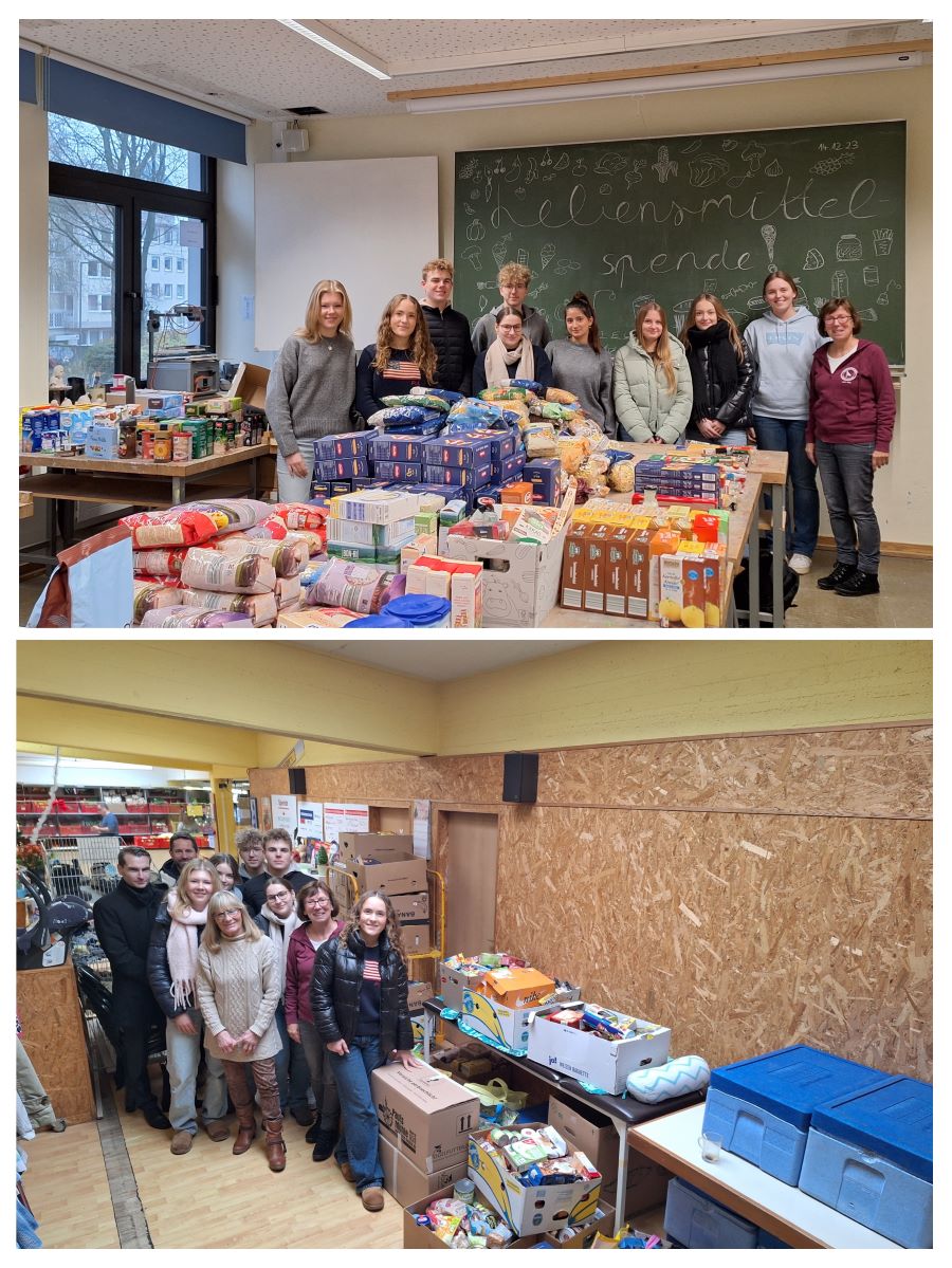 In dieser Woche war es wieder so weit: Die seit 12 Jahren alljährlich von der SV organisierte Lebensmittelspende am Petrinum fand statt, und die gesammelten Lebensmittel wurden am Donnerstag, den 15. Dezember, zum Tafelladen in Recklinghausen gebracht. Nudeln, Reis, Konservendosen, Kaffee, Marmelade und ähnliche haltbare Lebensmittel wurden von der gesamten Schulgemeinschaft des Petrinum gespendet und bei der Tafel mit Freude empfangen. Besonders in diesem Jahr hatte die Spende eine große Bedeutung für die Tafel, wie uns dort erklärt wurde, denn die Not ist in den letzten anderthalb Jahren noch einmal größer geworden. Viele Faktoren erschweren die Arbeit der Tafel erheblich: Seit Beginn des Ukraine-Krieges gibt es viel mehr Menschen, die auf Unterstützung durch die Tafel angewiesen sind. Die Anzahl der Bedürftigen hat sich von 1250 im Februar 2022 auf 2500 im Dezember 2023 verdoppelt! Ein weiterer erschwerender Faktor für die Arbeit der Tafel war die starke Inflation im letzten Jahr, da sich vor allem der Preis von Lebensmitteln um circa 8 % erhöht hat. Gleichzeitig gab es leider eine Verringerung der Spenden, was auch den Rückstand an Lebensmitteln erhöht hat.