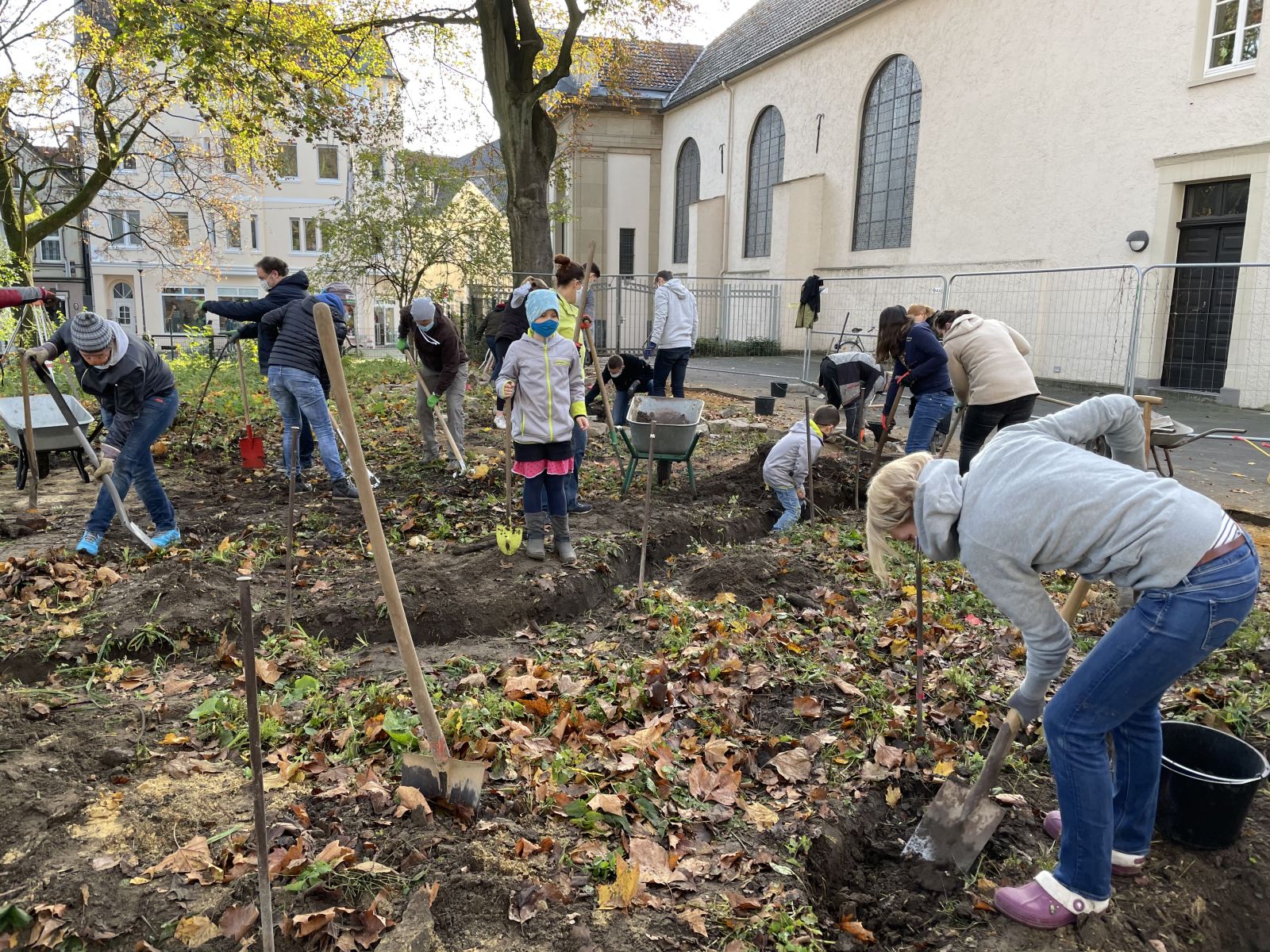 Endlich ging es los: Nach über vier Jahren Planung, zahlreichen Anträgen, langwierigen Vorarbeiten und schon zwei offiziellen ersten Spatenstichen mit offiziellen Partner und Vertretern des Schulträgers ging es nun wirklich ans Werk. Eltern, Schülerinnen und Schüler sowie Lehrerinnen und Lehrer werkelten gemeinsam mit der Schulleitung unter Anleitung des planenden und ausführenden Landschaftsarchitekturbüros Garten Design Noga an der Reaktivierung und Neugestaltung des historischen Schulgartens der Schule. Das Projekt mit einer Gesamtinvestitionssumme von über 80.000€ wird unter anderem mit Mitteln des Projekts Schulhofträume, bei dem wir im vergangen Jahr bundesweit den 2. Platz belegten, und des Heimat-Fonds NRW unterstützt. Trotzdem sind wird auf die Eigenleistung der Schulgemeinschaft angewiesen, um das gesamte Projekt realisieren zu können. Bis zur avisierten Vollendung des Schulgartens im Juni 2021 wird es noch zahlreiche derartige Projekttage geben, an denen es dann für die gesamte Schulgemeinschaft gilt, Kreide und Stifte gegen Sand und Steine zu tauchen. Es ist sehr schön, ein derart gemeinsames und verbindendes Projekt mit der gesamten Schulgemeinschaft umzusetzen. Weiter Bilder unseres Auftaks sind hier abrufbar.