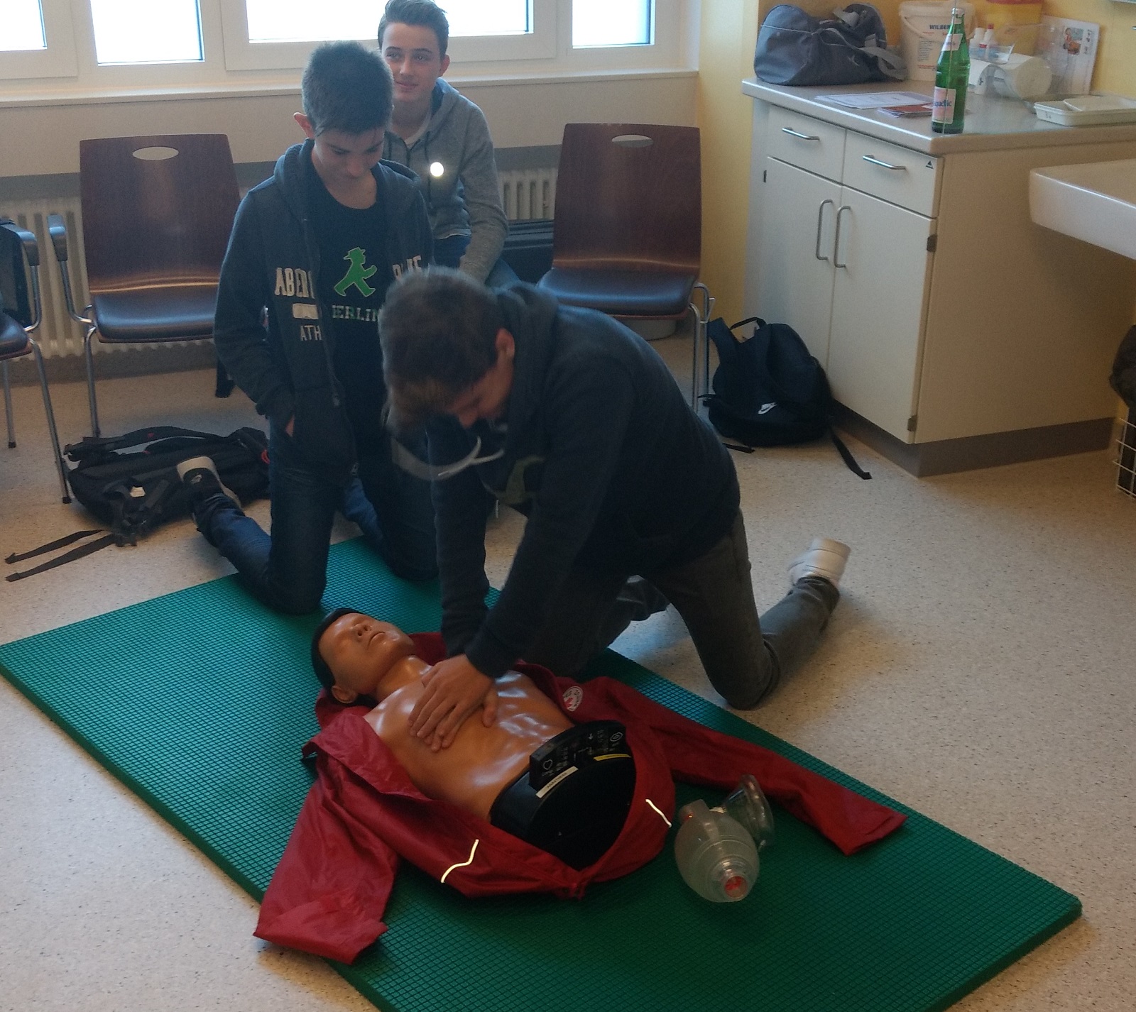 Zur praktischen Übung wurde für unsere Klasse im Anschluss daran, am 11.10.2018, ein Intensivkurs zur Einübung einer Reanimiation und wesentlicher Notfallmaßnahmen im Krankenhaus selbst ermöglicht. Ärzte haben uns in Kleingruppen ganz genau gezeigt, wie man im Notfall reagiert und was man machen muss um die Personen wieder ins Leben zu rufen. Ein wichtiger Punkt dabei war die Kommunikation mit den anderen Helfern. Hatten wir alle vor dem Kurs noch mit einem unsicheren Gefühl, in solchen kritischen Maßnahmen irgendeinen Aspekt zu vergessen, fühlten uns danach gut informiert und jederzeit bereit, Leben zu retten.