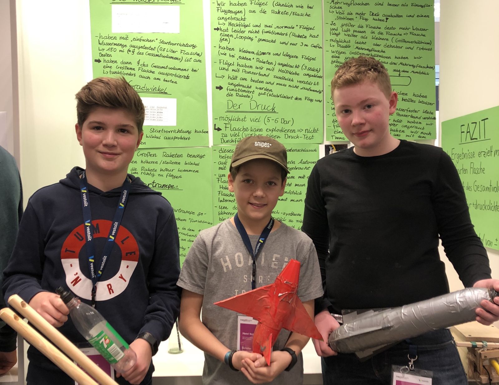 Raketenstark ist auch der Erfolg der drei Forscher beim Wettbewerb: Mit ihrem Projekt belegten sie nicht nur den ersten Preis in der Sparte „Schüler experimentieren – Physik“, sondern qualifizierten sich außerdem für den Landeswettbewerb von Jugend forscht im Mai 2020.