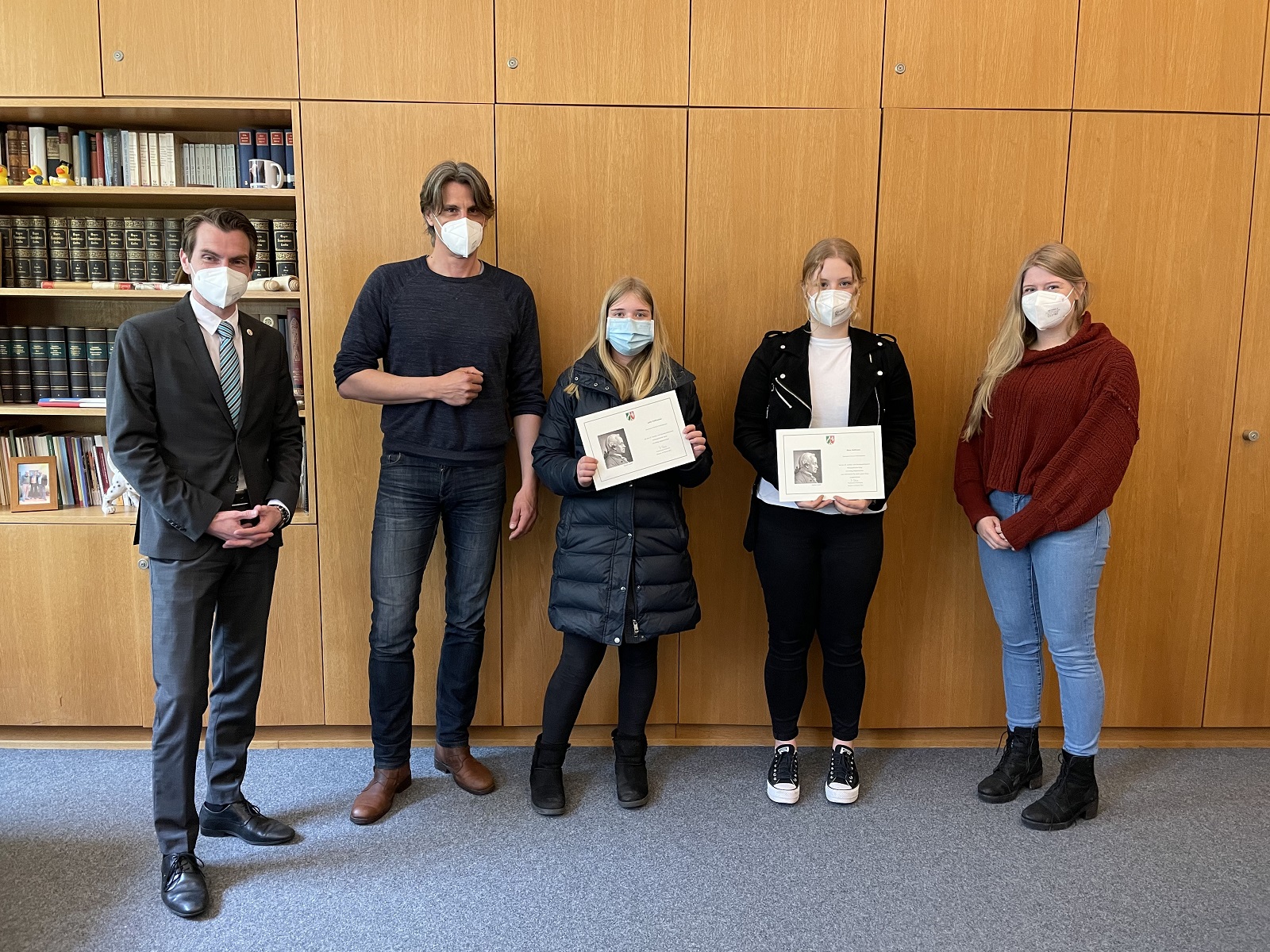 Die Schülerin Lydia Hoffmeister aus der Jahrgangsstufe Q1 und die Schülerin Mara Hoffmann aus der Jahrgangsstufe EF wurden von der Jury für einen guten Essay geehrt und erhielten eine Urkunde.