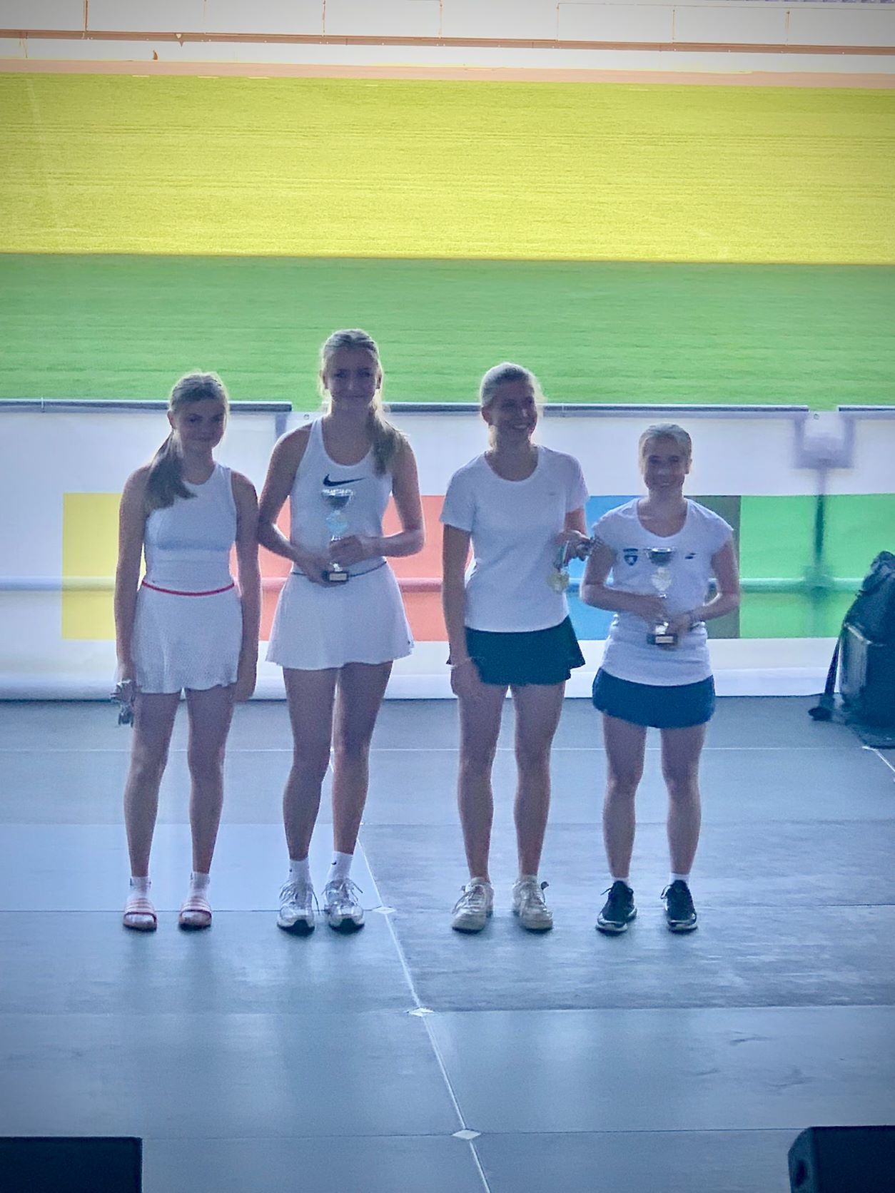 Nachdem sich unsere Tennis-Damen Frida Arntzen, Emma Baatz, Christiane Dölle und Eni Krems im Bundeswettbewerb „Jugend trainiert für Olympia & Paralympics“ in den vergangenen Monaten zuerst für die Regierungsbezirks- und anschließend für die Landesteilmeisterschaften qualifiziert hatten, zogen unsere Damen zum Landesfinale nach Duisburg ein. In der Sportschule Wedau wurde den Athletinnen und Begleitern am vergangenen Dienstag, bei luftigen 28 Grad im Schatten, die gesamte Bandbreite an sportlichen Einzel- und Gruppenwettkämpfen geboten. Über 2.000 Schülerinnen und Schüler kämpften in zehn olympischen und drei paralympischen Sportarten um 41 Landestitel und die begehrten Tickets für das Berliner Herbstfinale 2022.