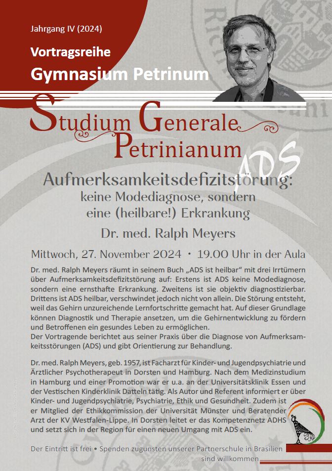 Mittwoch, 27.11.2024, um 19.00 Uhr in der Aula des Gymnasium Petrinum