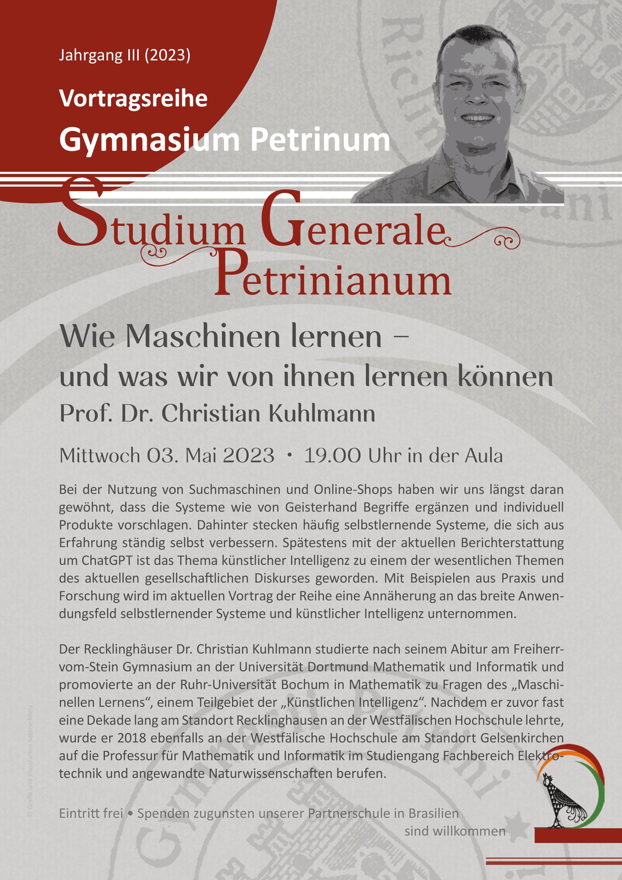 Im Rahmen des Studium Generale Petrinianum Jahrgang III (2023) werden am