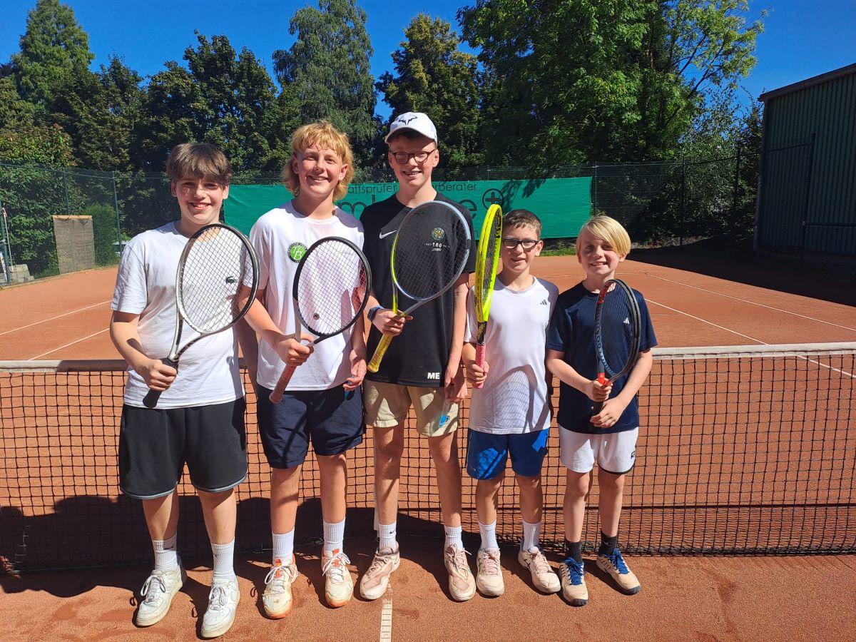 Im Rahmen der diesjährigen Kreismeisterschaft trat unser Team in Castrop gegen die Mannschaften des ASG und des EBG an. Gespielt wurden im Modus Jeder-gegen-Jeden jeweils 2 Einzel und ein Doppel. Nach großem Kampf in gleißender Hitze gingen beide Partien leider mit 1:2 verloren.