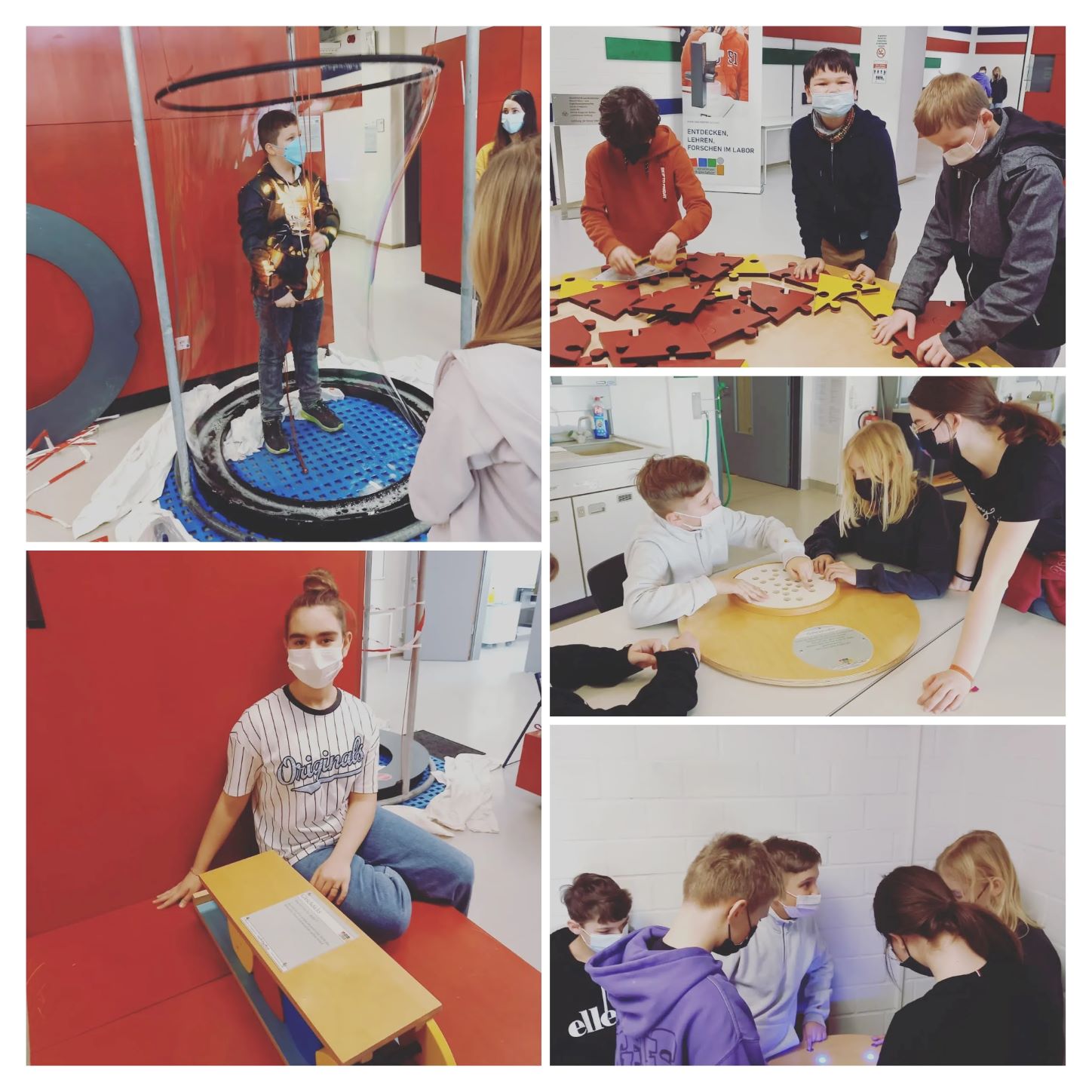 Wir, die Klasse 6d von Frau Kisselbach und Frau Busse, konnten an einem mathematischen (und physikalischen) Projekt an der Ruhr-Uni Bochum teilnehmen. Es gab einiges zu entdecken, z.B. symmetrische Puzzle, Stationen zu coolen Umrechnungen oder komplexe mathematische Formeln leicht erklärt, aber auch einiges zum Ausprobieren gehörte dazu. Mir gefiel besonders die Station zum Satz des Pythagoras, weil wir dort auf spielerische Weise viel lernen konnten und fortgeschrittene Schülerinnen und Schüler eine neue Perspektive darauf bekamen. Auch den physikalischen Teil genoss ich sehr.